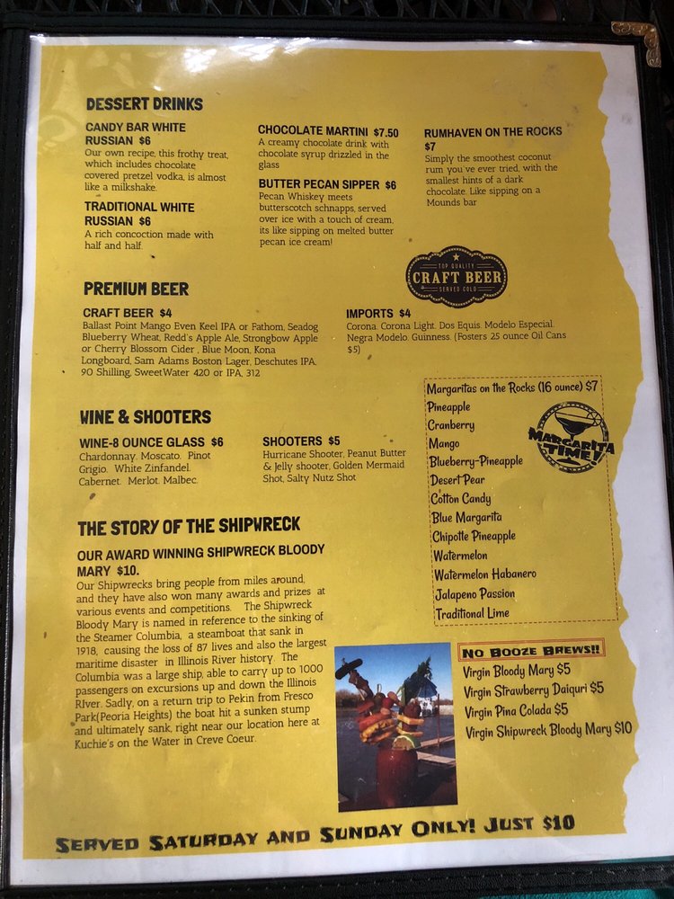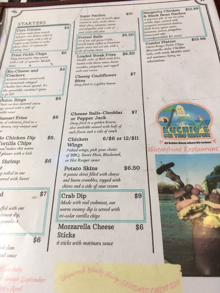 Kuchie’s on the Water is an American restaurant located in Creve Coeur, IL, offering a wide range of menu options and services. From starters like Ku Cheese and Crackers with homemade cheddar beer cheese spread to salads like the Loaded House Salad and Captain's Salad, there is something for everyone. The Grilled Chicken Quesadilla and Lobster Quesadilla are also standout options, filled with delicious ingredients and served with flavorful accompaniments. The restaurant provides various utilities such as outdoor seating, free Wi-Fi, and a full bar, making it a versatile dining experience. With options for catering, happy hour specials, and even cryptocurrency payment, Kuchie’s on the Water ensures a convenient and enjoyable meal for all patrons.